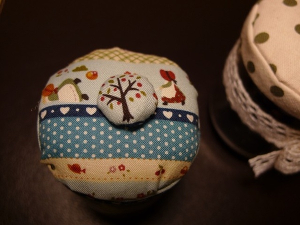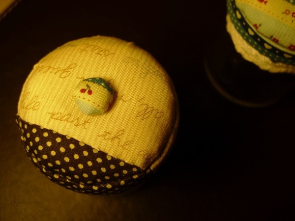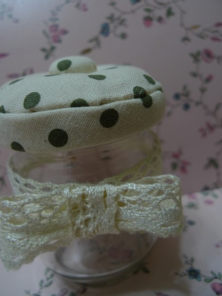 第三個罐子用了兩塊布,布扣用第二塊布的花紋,意外的蠻搭,連罐邊都有對花光是收邊就搞了很久。這個完成度最高,其實這個花最少時間做,是邊看HBO邊做完的。
